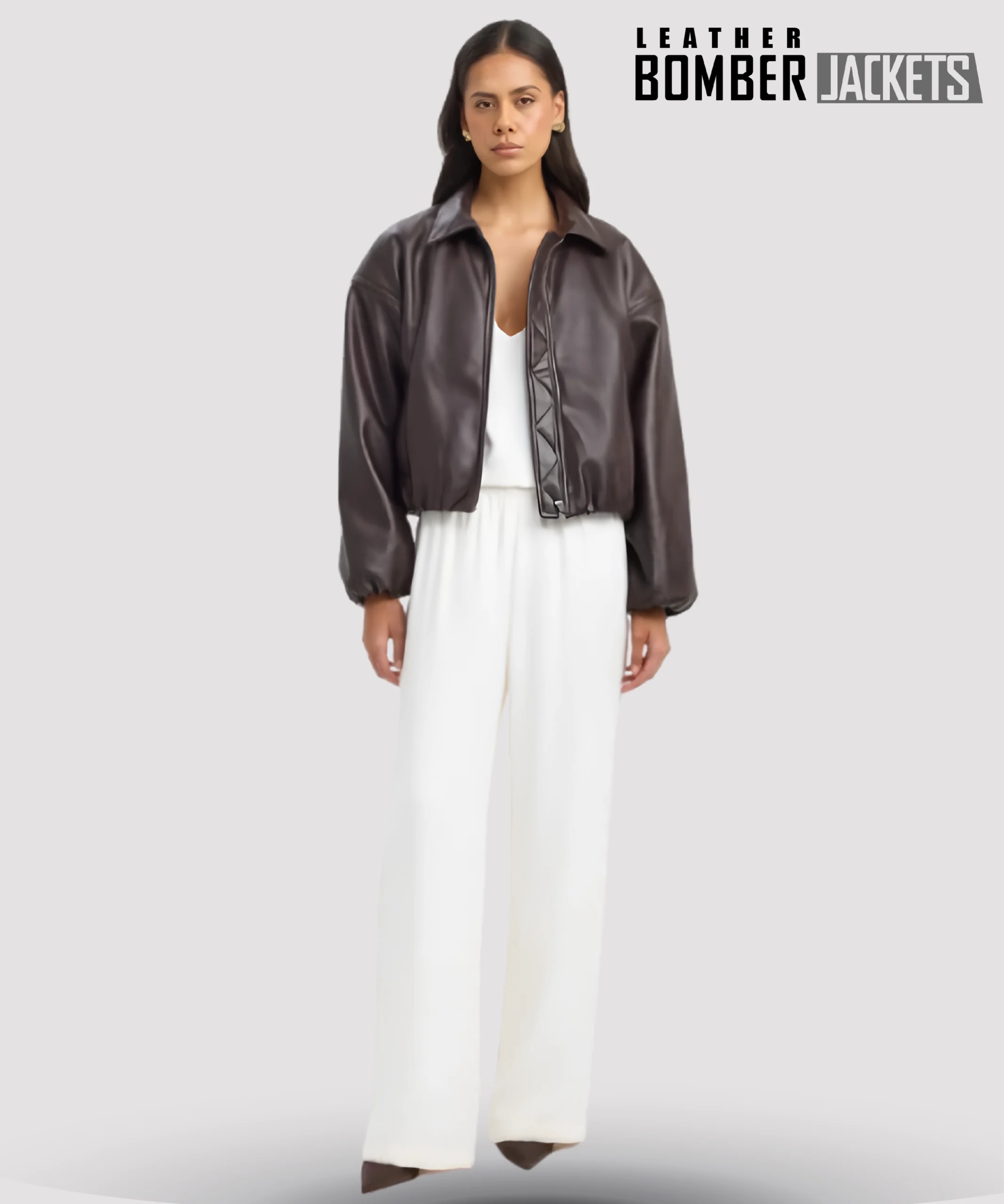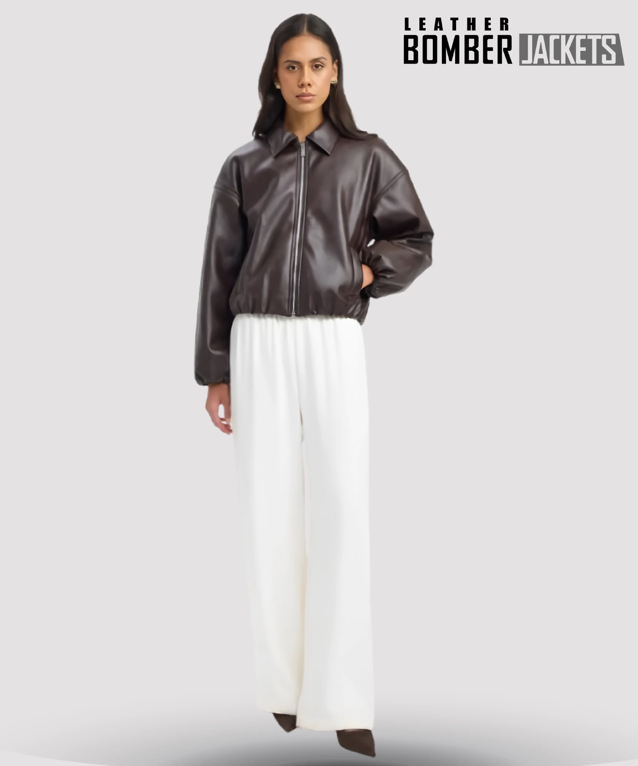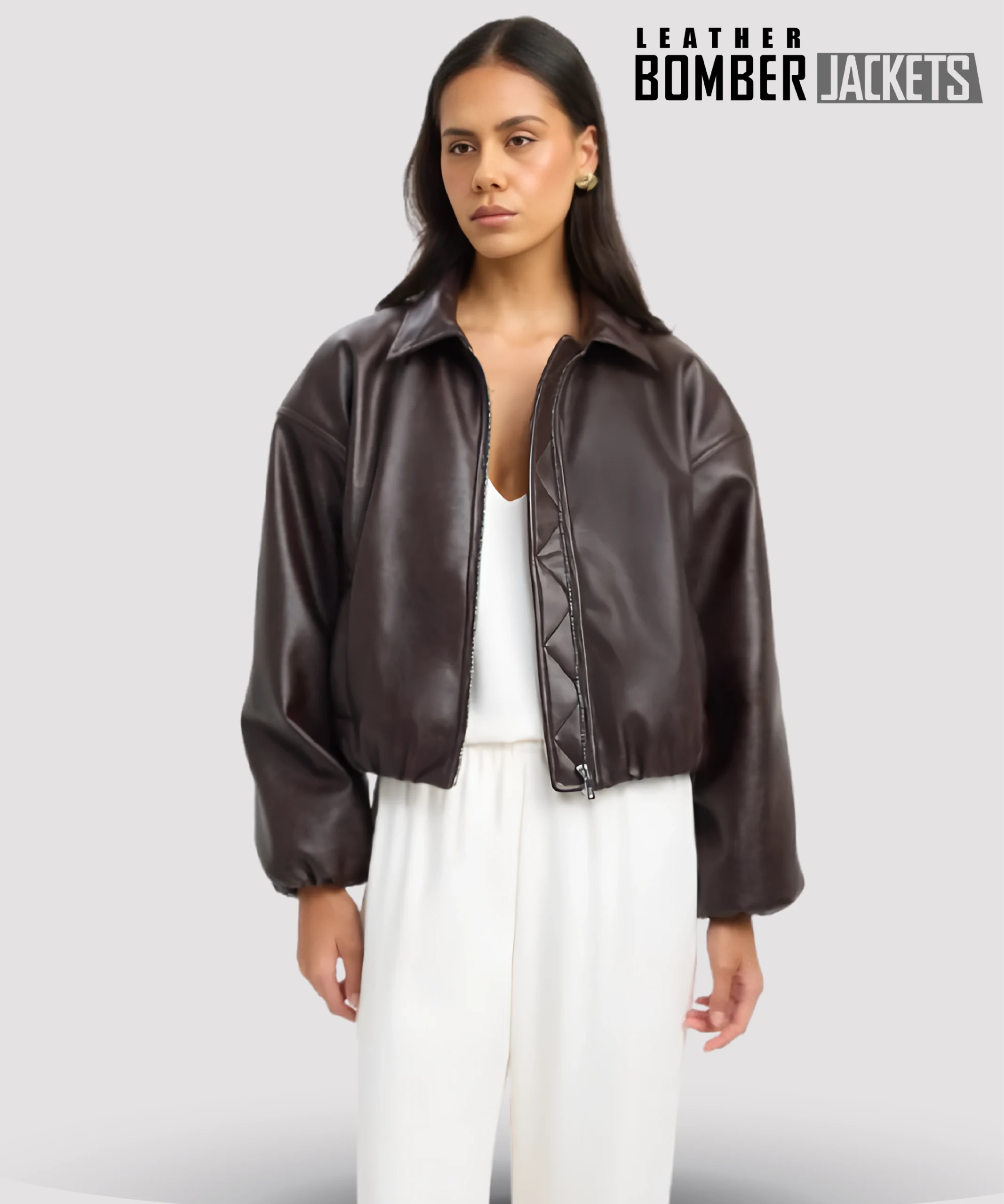 Classic Dark Brown Leather Bomber Jacket for Women